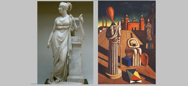 Terpsichore is loosing ground, her gracefulness and joy of dancing are almost out of sight, giving way to Chirico’s Disquieting Muse – oh, THIS one fits our times: hard, empty of joy, lifeless, but so impressive!!